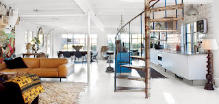 Impresionantes la lámpara colgante es un clásico por Ingo Maurer y la mesa de centro procedente de Francia, el sofá vintage que da calidez a la habitación, aunque si tengo que elegir algo de toda la casa me quedo con la escalera que me parece brutal.
