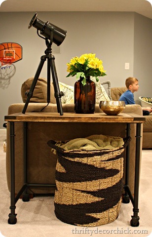 And sometimes there are items that are kind of a mess, and you can get them for an even better deal. :) I did that with our side table in the basement and added a new tabletop: