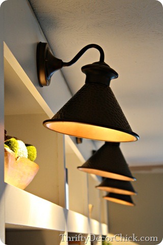 I had a design in my head all those months of thinking about it and a big part of that design was lights at the top of the bookcases. It took months to find something that was affordable but I finally found what I wanted in the outdoor section:
